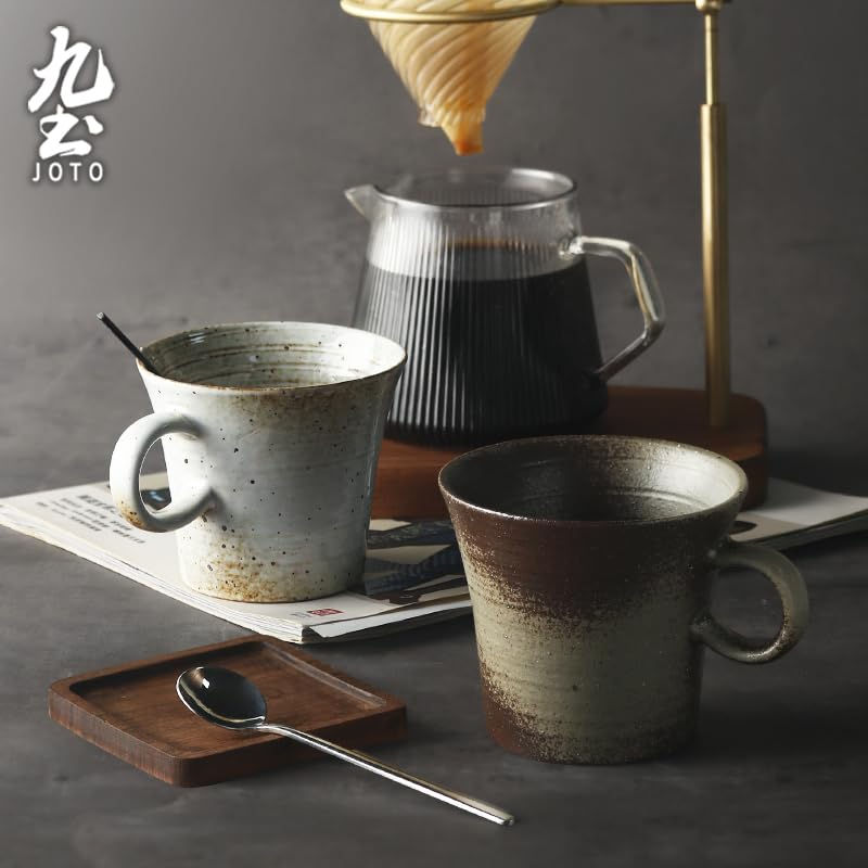 JOTO - 290ml 粗いセラミックコーヒーマグ、ヴィンテージ、ハンドメイド、ハンドル付き、オフィス
